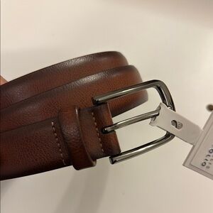 NWT Perry Ellis Brown Leather Belt with Silver Buckle #385