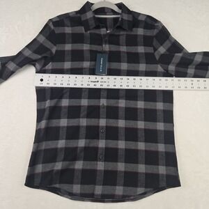 NWT Perry Ellis Mens Black Gray Red Plaid Shirt Sz Medium Button Up Long Sleeve