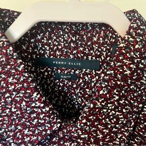 NWT Perry Ellis Red White Blue Micro Print Long Sleeve Dress Shirt New XL Slim F