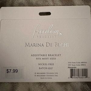 Goldtone adjustable Freedom bracelet by Marina De Buchi personalized with name Alex, Nickel-free. Purchased from Hallmark