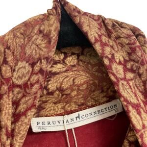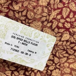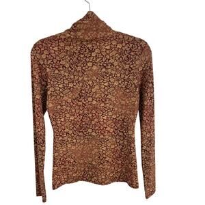 NWT Peruvian Connection Spice Mille Fleur Turtleneck Burgundy Tan Leaf Print XS