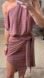 Gorgeous fitted asymmetrical dress in a shimmery Dusty Rose color with one-shoulder design. Stylish drape and elegant fit. Perfect for a wedding guest or cocktail attire.