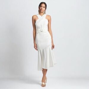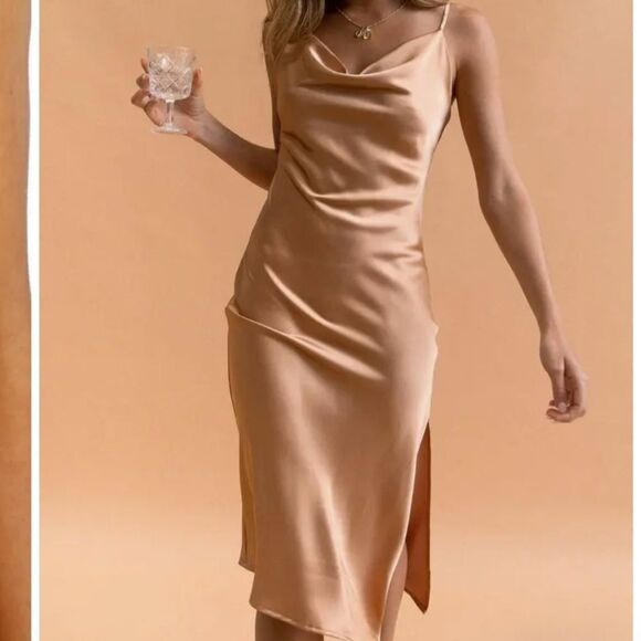 Rock a flawless night-out vibe in this slinky satin slipdress designed with a drapey neckline and a stem-showing side vent.