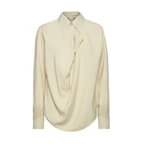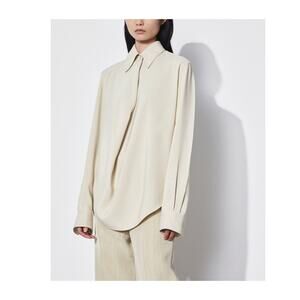 NWT Petar Petrov Lami Silk Blend Collared Draped Pleat Long Sleeve Blouse 44 / L