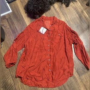 NWT Pete and Greta- Capras Button Down Shirt red JOHHNY WAS classic fall casual