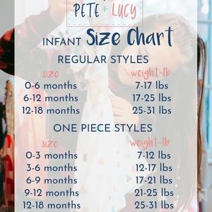 NWT Pete+Lucy romper in the Watermelon Picnic fabric line. Super cute prints in super soft fabrics! This brand does run generous so please refer to the sizing chart in the listing photos. What are our products made of? The vast majority of our items is a cotton or polyester spandex blend, commonly referred to as "milk silk." The general rule is that anything with a pattern is "milk silk" and anything that is a solid is a soft cotton knit blend.