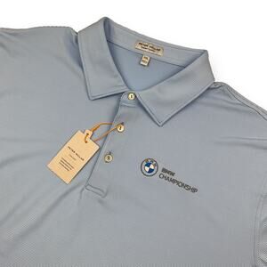 NWT Peter Millar Blue White Striped Summer Comfort BMW Championship Polo Shirt