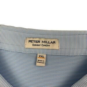 NWT Peter Millar Blue White Striped Summer Comfort BMW Championship Polo Shirt size XXL. Please see full measurements listed below. In brand new with tags condition, no stains, holes, rips, or tears.