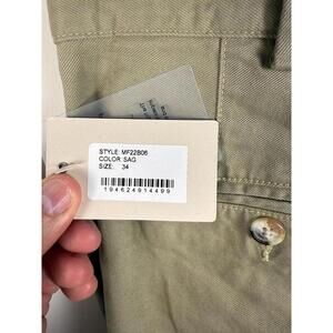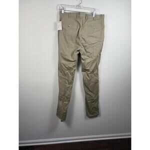 The NWT Peter Millar Crown Chino Quality Pants MF22B06 in Sag Khaki are a stylish and versatile addition to any man's wardrobe. Made from a blend of spandex and cotton, these slim-fit pants feature a flat front design with button and zipper accents. The beige color and solid pattern make them ideal for casual occasions, while the straight leg style and 35-inch inseam provide a comfortable fit. With their lightweight and stretchy construction, these pants are perfect for all seasons and can be easily machine washed for convenience.
