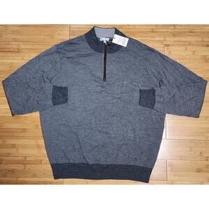 NWT Peter Millar Needle Stripe Italian Merino Wool Quarter Zip Sweater Gray Men's Size XXL 2XL