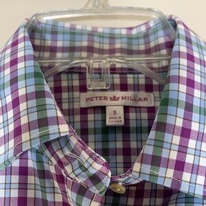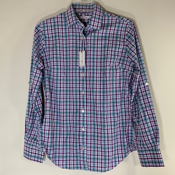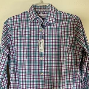 NWT. Peter Millar Small Button Front Roll-tab Long Sleeve Plaid Shirt.