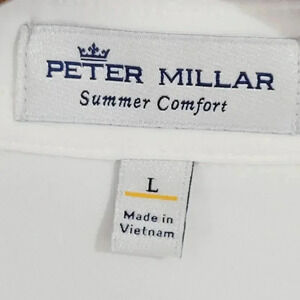 NWT Peter Millar Summer Comfort Mens Polo Shirt L White Polyester/Spandex 23CT