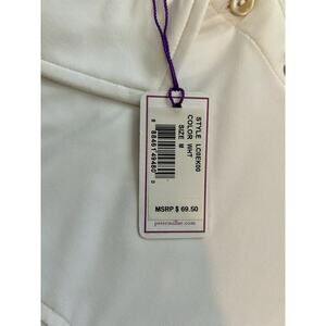 The NWT Peter Millar Women’s Medium Golf Polo in White is a stylish and versatile top perfect for summer, fall, and spring. Made of polyester with UPF 50+ protection, this polo features a collared neckline, short sleeves, and a button closure. The embroidered logo adds a touch of sophistication, making it suitable for travel or casual occasions. The brand's reputation for quality and style is evident in this classic and timeless piece, ideal for any woman's wardrobe.