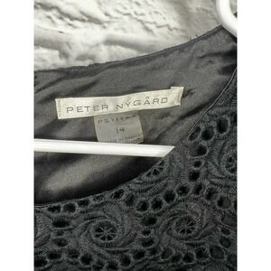 NWT Peter Nygard black sheath eyelet sleeveless dress, size 14p.