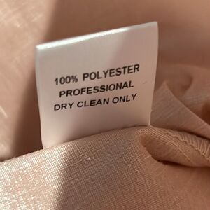 100% polyester but has the look of raw silk. Dry clean. Made in USA New York