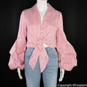 NWT Petersyn Silvia Long Sleeve Cotton Cropped Top w/ Bell Sleeves, Cheshire