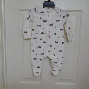NWT Petite Plume Arctic Express Train Wreath Print Footie Pajamas sz 3-6 Months