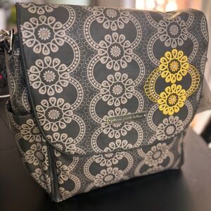 NWT Petunia Pickle Bottom Grey Black Yellow Embroidered Diaper Bag Set