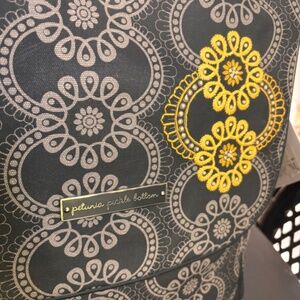 Brand new and never used Petunia Pickle Bottom diaper bag. Back pack. Grey, creme and yellow accent. Attached changing pad. Detachable shoulder strap. *Added feature: magnetic pads on Velcro for opening and closing with ease. Comes with matching nursing cover.