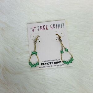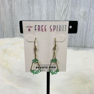 NWT Peyote Bird Free Spirit Earrings Gold Tone Green Beads 1.5" Southwestern Jew