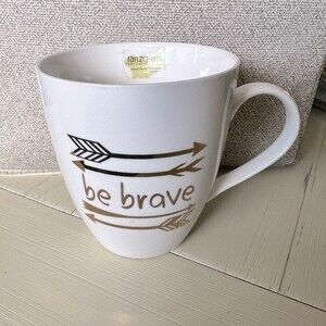 NWT Pfaltzgraff Everyday Be Brave Coffee Mug Bone White Gold Warrior Arrows 18oz