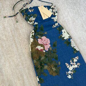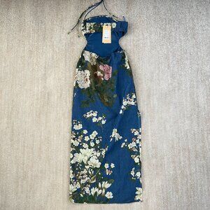 NWT Pheme Paris Floral Halter Silk Cotton Resort Cocktail Maxi Dress XS Blue