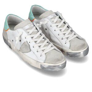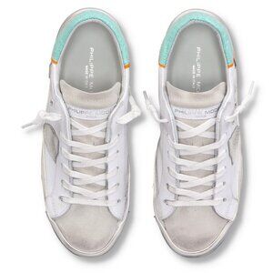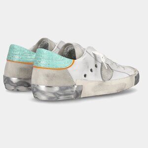 NWT Philippe Model PRSX Low Veau Croco in White and Aquamarine - Size 40