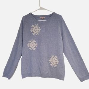 NWT Philosophy 100% Cashmere Light Blue Snowflake Luxury Sweater Sz XL