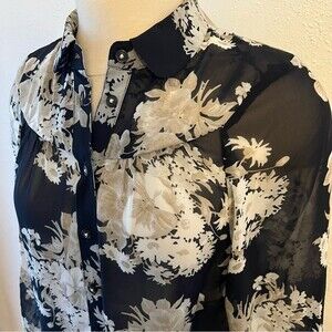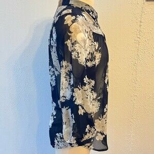 NWT Philosophy Republic Clothing Navy Chiffon Floral Print Button Down Blouse S