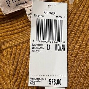 NWT Philosophy Woman Mustard Dolman Sleeve Pullover Sweater Size 1X