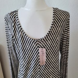 NWT Philosophy Women's Long Sleeve Striped Black/White Dress, sz L