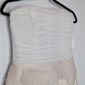 NWT Phoebe Couture Strapless Tiered Rushed Mini Formal Dress White Champagne 2