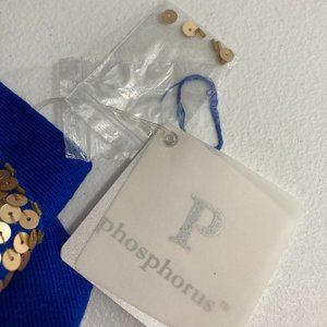NWT Phosphorus Sequin Embellishment Knit Tank Top Blue Silk Blend Size L