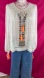 Keywords: Pia Pauro, peasant top, bohemian top, embroidered blouse, beaded top, tassel top, white blouse, rayon top, long sleeve top, tie sleeve, boho chic, festival top, summer top, women's top, size L