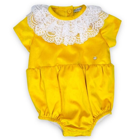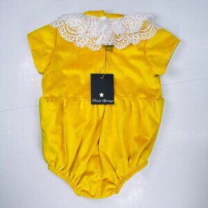 NWT Piccola Speranza Marigold Yellow Lace Ruffle Collar Bubble Romper Outfit 3m
