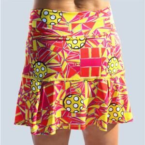 NWT Pickleball Bella Women's Red/Yellow Angle Shot 1 Drop Pleat Skort Size S
