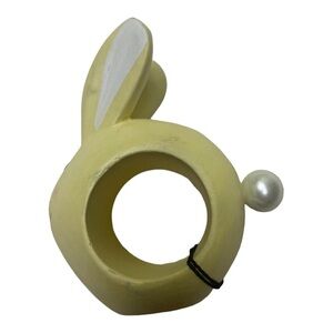 NWT Pier 1 Light Yellow Easter Bunny Painted Napkin Holders Set of 5