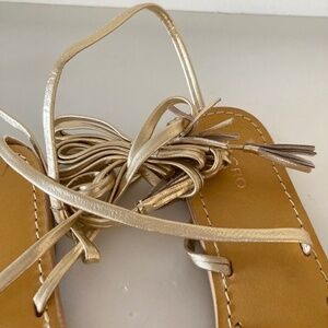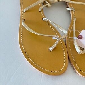 NWT Pilcro Anthropologie Tie Up Gold Leather Boho Thong Sandals