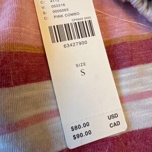 NWT Pilcro Pink Striped Button-Down Collared Shirt With Puff Sleeves Size Small