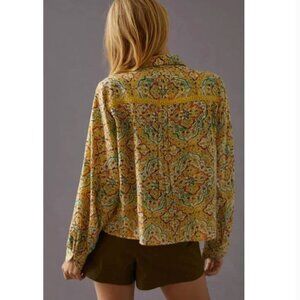 NWT Pilcro by Anthropologie Pintuck Peasant Blouse Yellow Floral Print XS