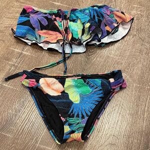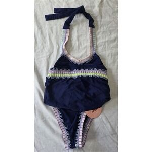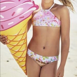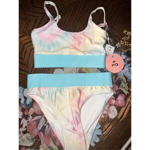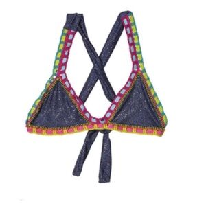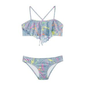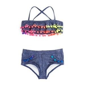 NWT PilyQ Girls Demin Sparkle Rainbow Bikini