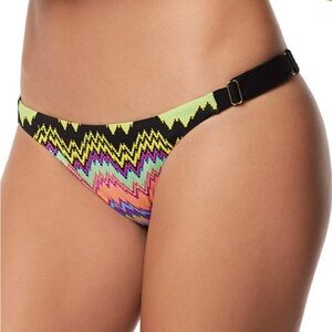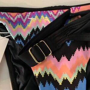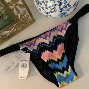 NWT Pilyq Clara Mixed Color Geometric Full Bikini Bottoms with‎ Adjustable Sides
