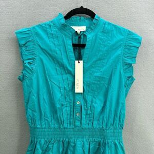 NWT Pinch Womens Smock Waist Ruffle Mini Dress Green Blue Size Large