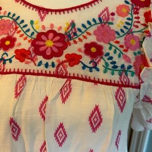NWT πΈ Pink Aztec & Embroidered Ruffle Top πΈ