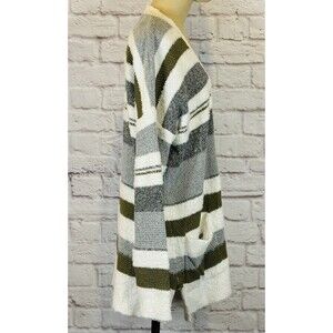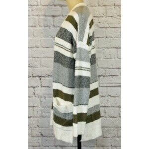 NWT Pink Clover Open Front Long Cardigan Sweater Stripes Pockets SOFT Oversize M