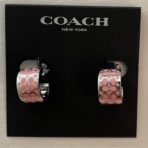 NWT Coach Signature C Enamel Huggie Earrings Silver/Pink