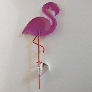 An iconic pink metal flamingo plant pick by Michael's Ashland brand. This brightly painted tropical bird on a metal pick is perfect for adding some color to your plants or flowerbed. This unique outdoor patio decor item measures: approx 6.5" tall bird (including legs) on a 10" tall pick, and is new with tags. It makes a perfect accessory for your beach house, porch or garden :)