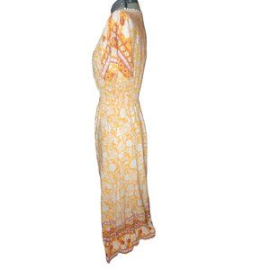 Boutique brand. Lovely soft orange color with white floral design and cranberry accents