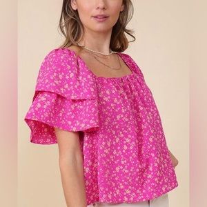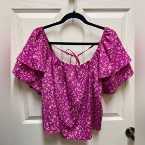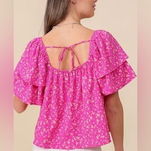 New! Sold at Nordstrom. Gorgeous shade of fucshia pink. Cute double layer ruffle sleeves, wear on or off shoulder, square neckline with adjustable tie across upper back. Bundle with other items in my closet to save on shipping.