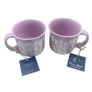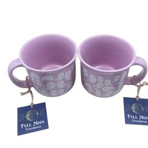 NWT Pink Ghost Mugs by Full Moon Furnishings - Set of Two - Camp - Matte